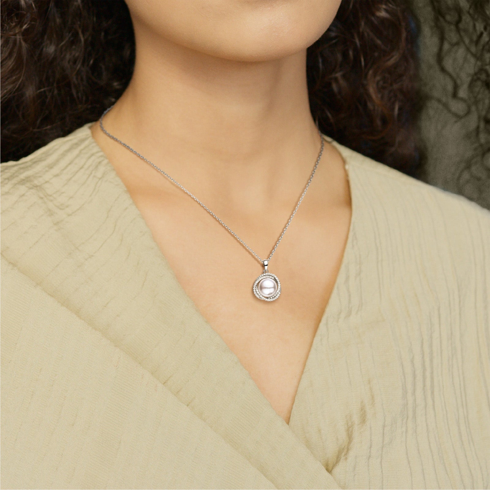 Designer pendant with 7-8mm diameter white Freshwater cultured pearl. Can be worn on any occasion, whether formal evening event or everyday casual.