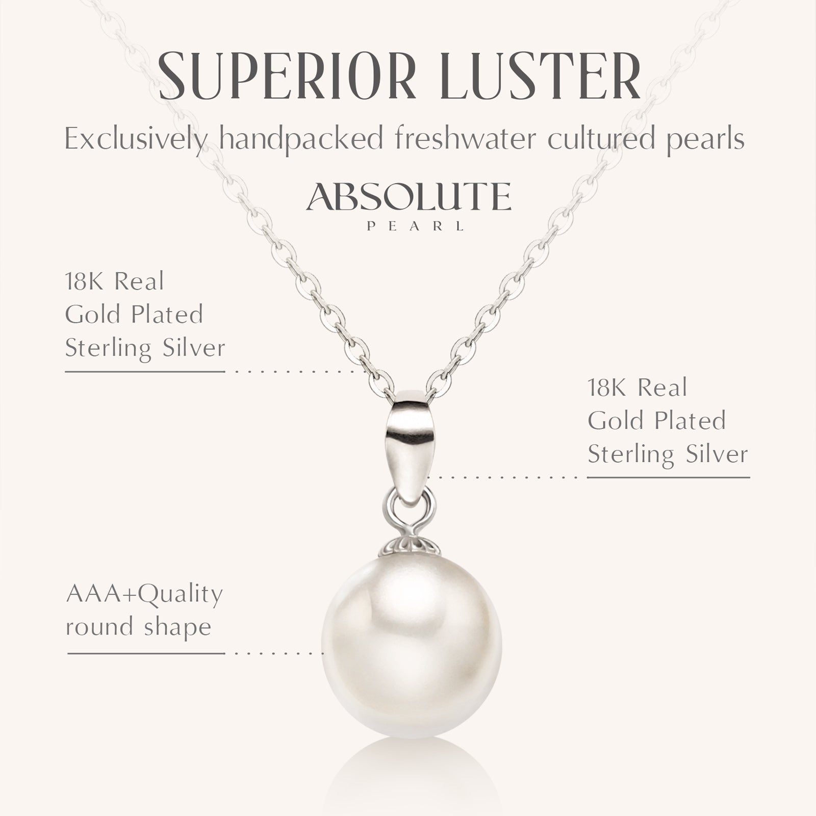 White Freshwater Cultured Pearl Pendant with 925 Sterling Silver Chain AAAA Quality