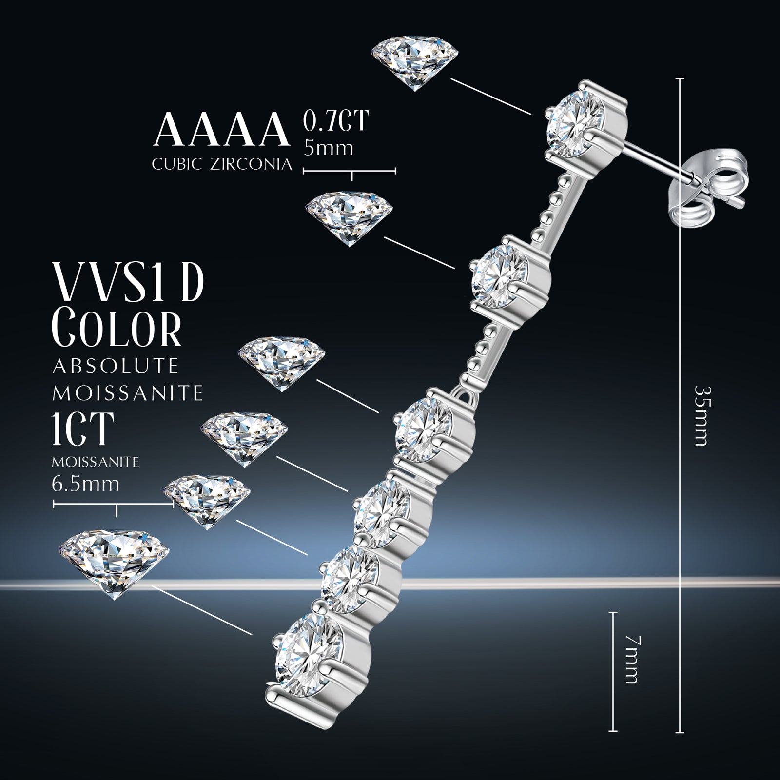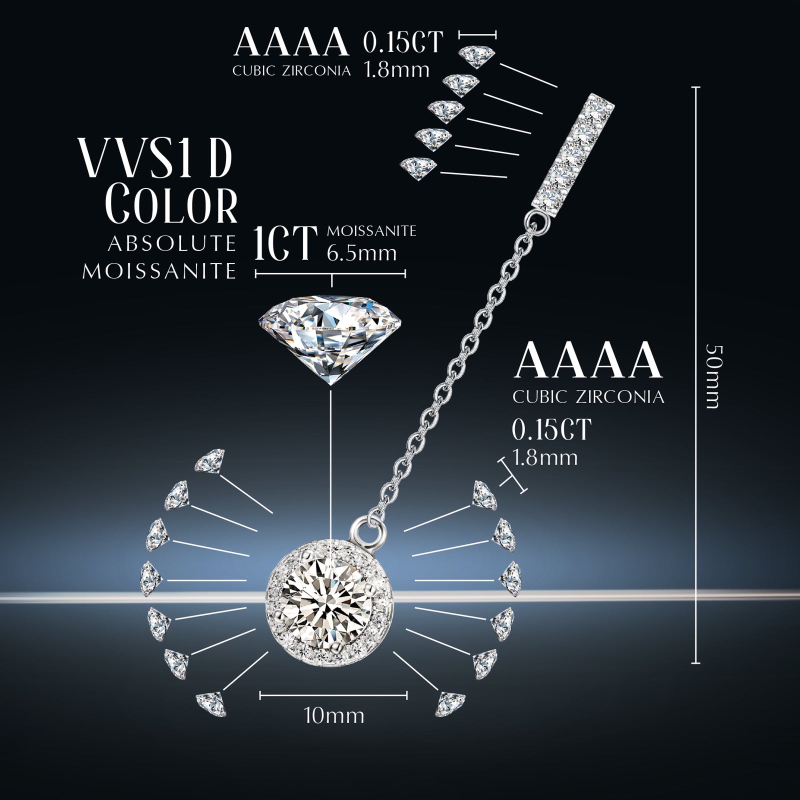 【MOISSANITE EARRINGS】The moissanite earrings is made of High Quality Moissanite,it share the similar color, hardness and element with diamond, and 2.5 times brilliance than diamonds.