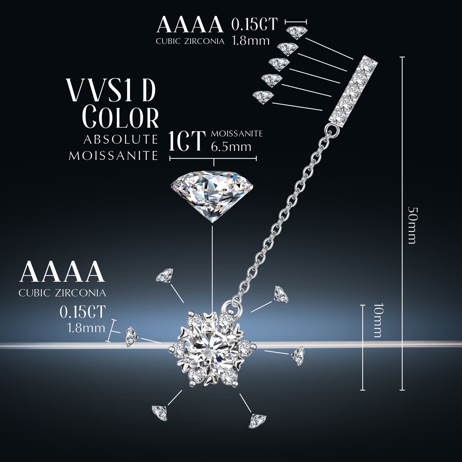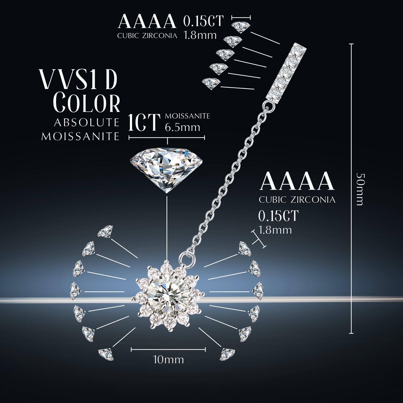 【HIGH QUALITY】This earring is packed with a GRA moissanite certificate, 100% easy pass the diamond tester to the hightest point.With advanced technology of setting and special plating, no worry about stones falling out or tarnish.