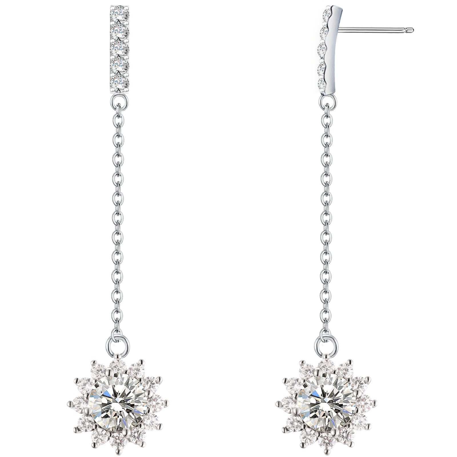 ABSOLUTE Moissanite Earrings for Womens S925 Sterling Silver Linear Earrings Hypoallergenic Sunflower Shape Dangle Earrings Studs for Women Birthday Gift With Certificate